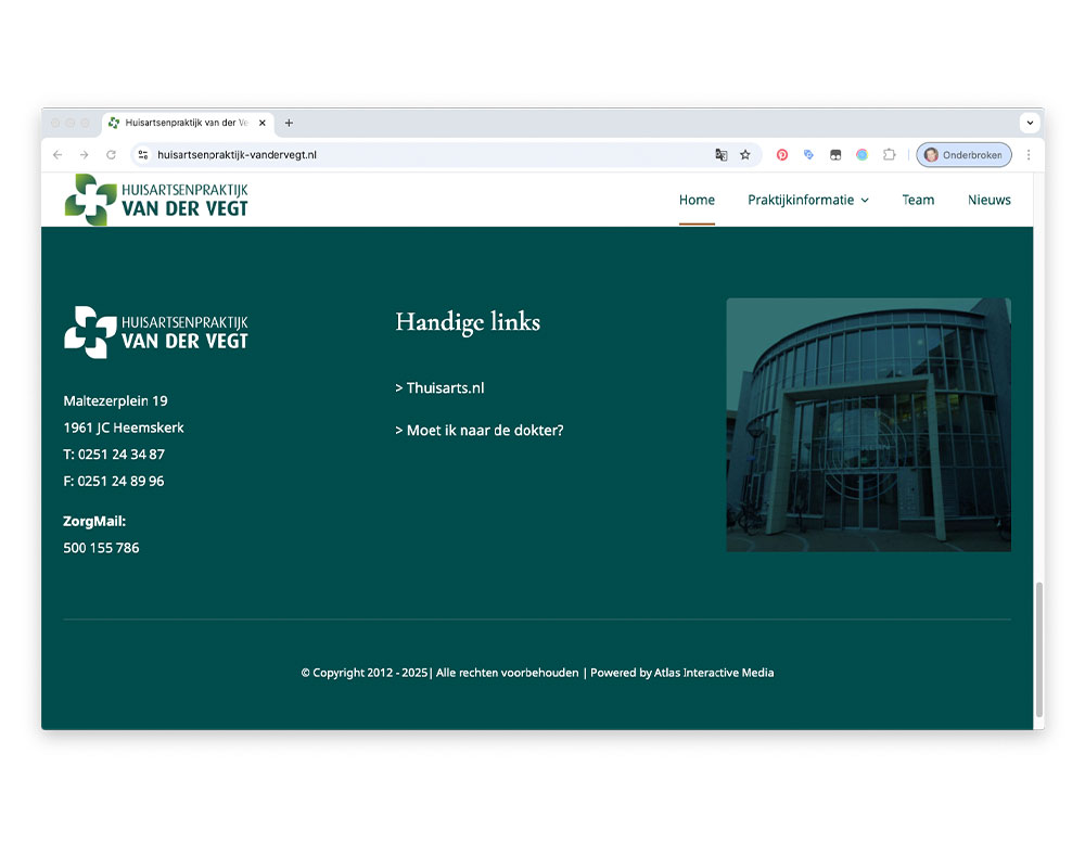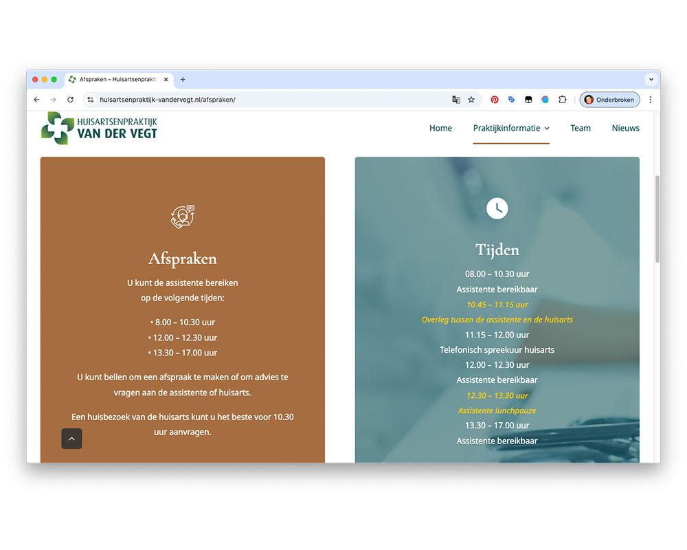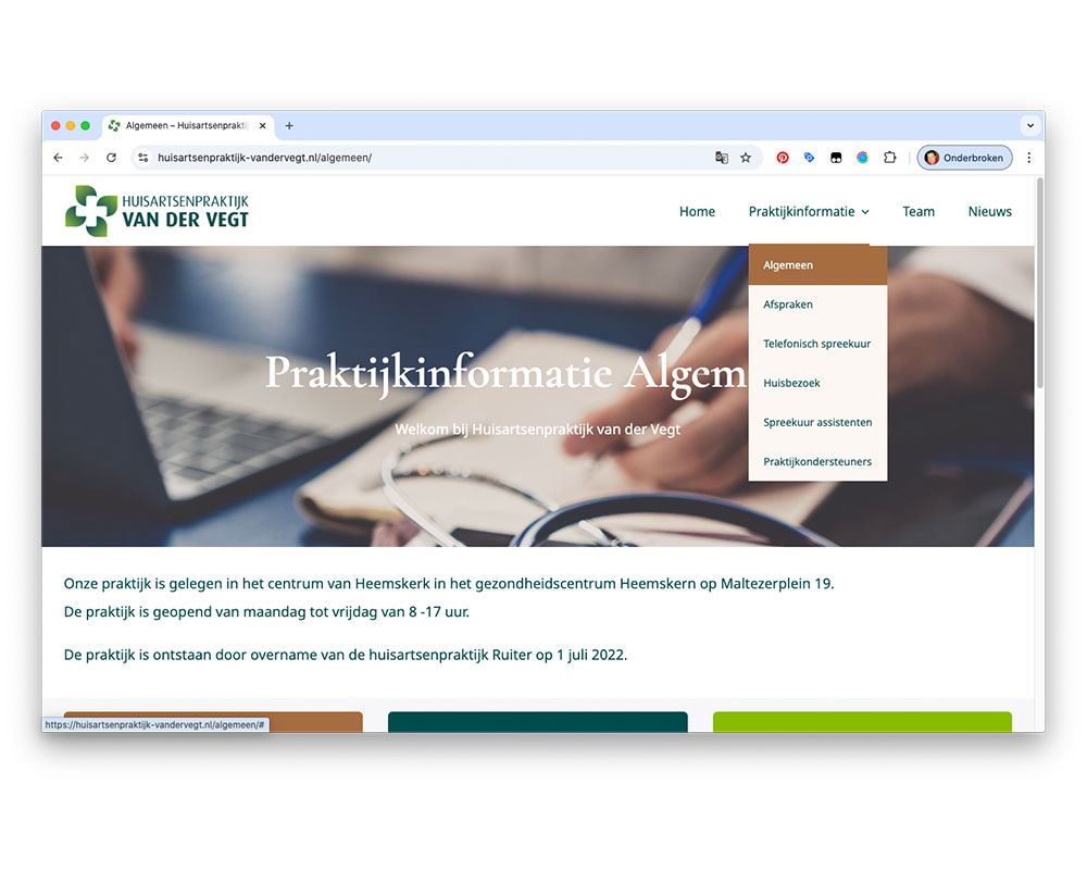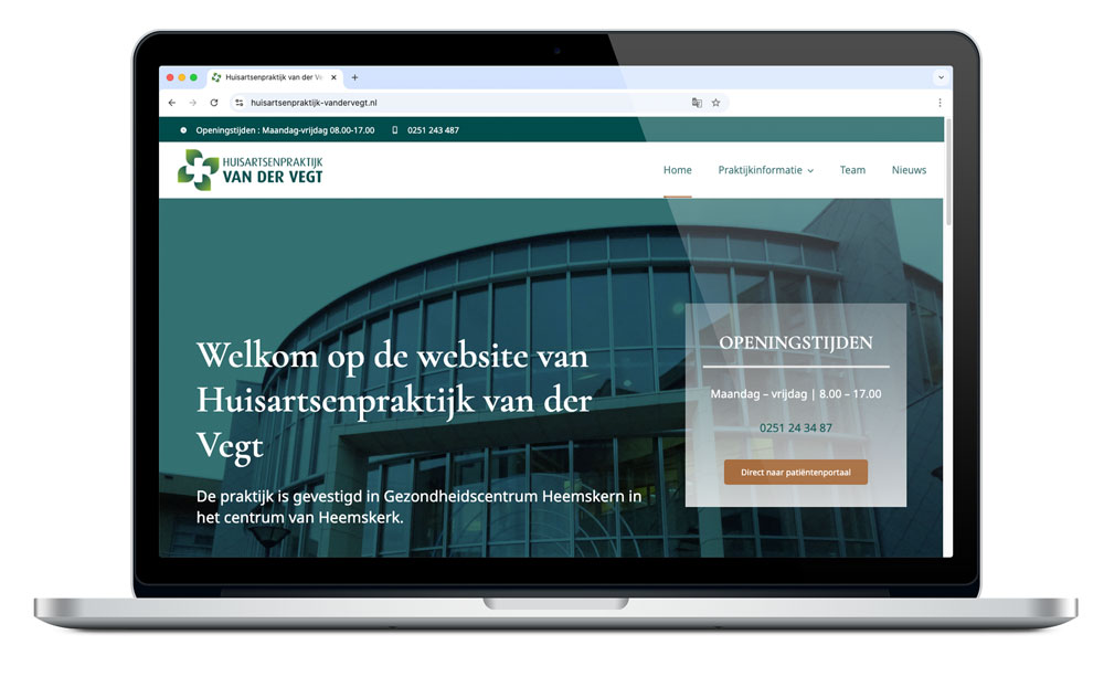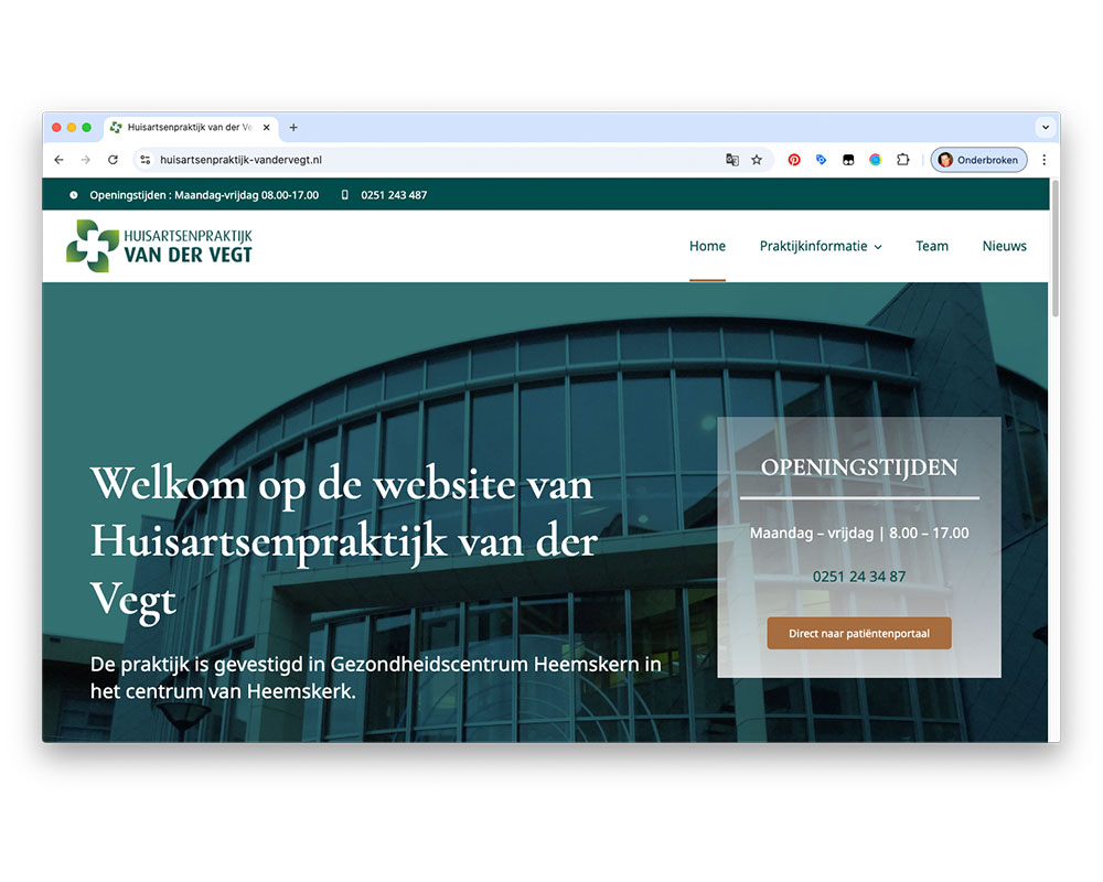 Huisartsenpraktijk van der Vegt in Heemskerk wilde een frisse website om de praktijk kracht bij te kunnen zetten.