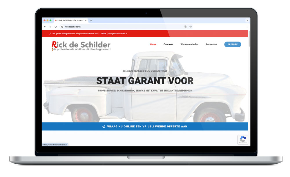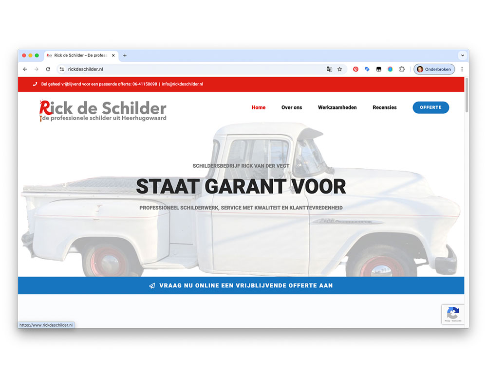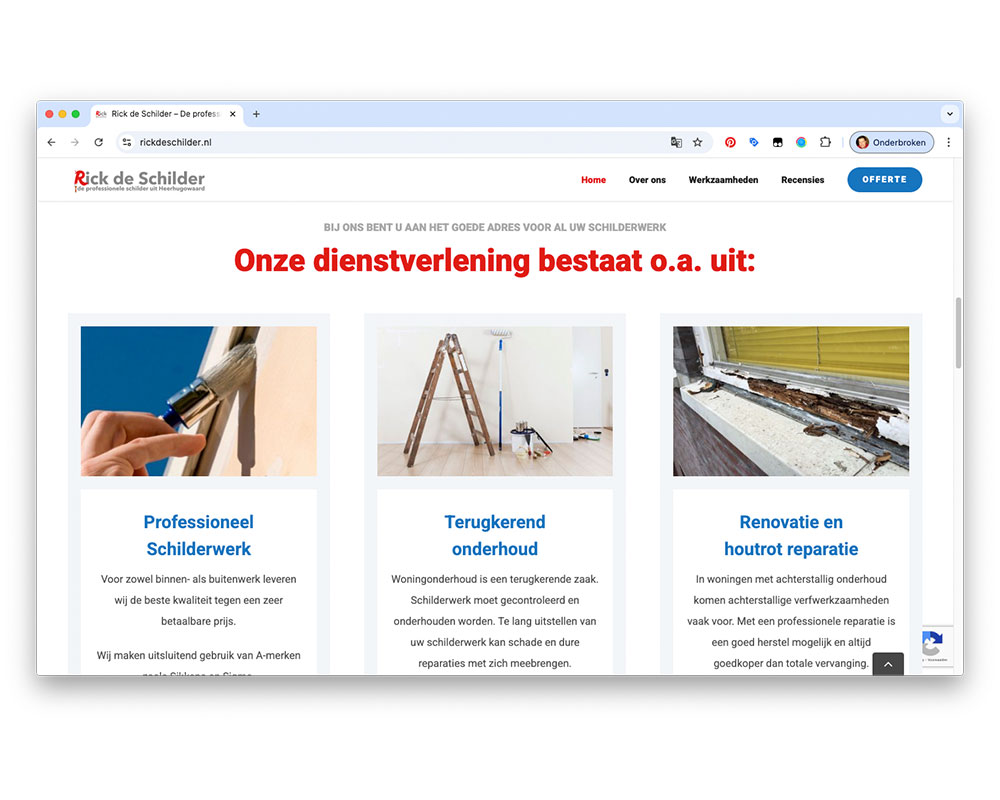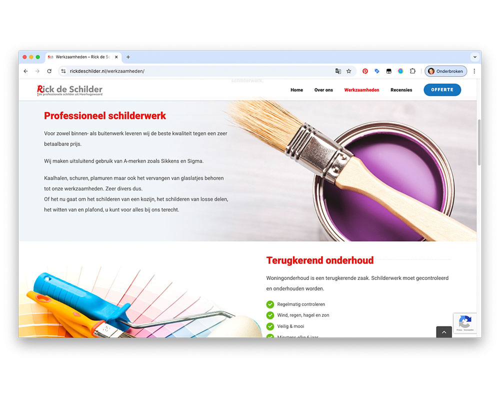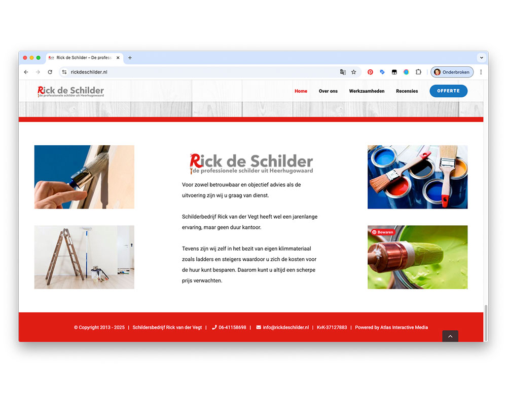 Rick de SchilderPatrick van der Vegt2025-10-16T17:38:44+01:00 Rick de Schilder Schildersbedrijf van Rick van der Vegt heeft een breed scala aan werkzaamheden om schilderwerk in perfecte staat af te leveren, variërend van het op conditie brengen van het houtwerk tot het aanbrengen en onderhouden van al het schilderwerk. OpdrachtgeverRick de Schilder BureauAtlas Interactive Media Project• Website naar websiteBijdrage Atlas Ontwerp, bouw en onderhoud website. Van ontwerp naar realisatie Bouw in WordPress Beeldbewerking Website ontwerp Website bouw Website onderhoud Resultaat Hieronder het resultaat van de website. WaidmannsheilPatrick van der Vegt2025-10-16T16:50:02+01:00 Waidmannsheil Gallery Waidmannsheil DTP - PrePress, Grafische vormgeving Stichting Oorlogshistorie BloemendaalPatrick van der Vegt2025-10-16T17:29:31+01:00 Stichting Oorlogshistorie Bloemendaal Gallery Stichting Oorlogshistorie Bloemendaal Webdesign Veteranen KennemerlandPatrick van der Vegt2025-10-16T17:23:05+01:00 Veteranen Kennemerland Gallery Veteranen Kennemerland Webdesign Bike RiQezPatrick van der Vegt2025-10-16T15:59:43+01:00 Bike RiQez Gallery Bike RiQez Webdesign Huisartsenpraktijk van der VegtPatrick van der Vegt2025-10-16T16:58:48+01:00 Huisartsenpraktijk van der Vegt Gallery Huisartsenpraktijk van der Vegt Webdesign